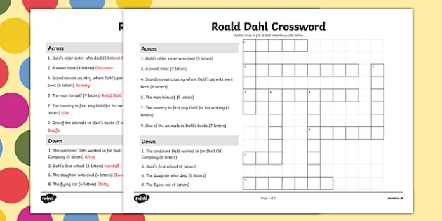Roald Dahl Crossword Clue - sporcle.com Crossword Clue. For the word puzzle clue of roald dahl, the Sporcle Puzzle Library found the following results. Explore more crossword clues and answers by clicking on the results or quizzes. 25 results for "roald dahl". hide this ad.